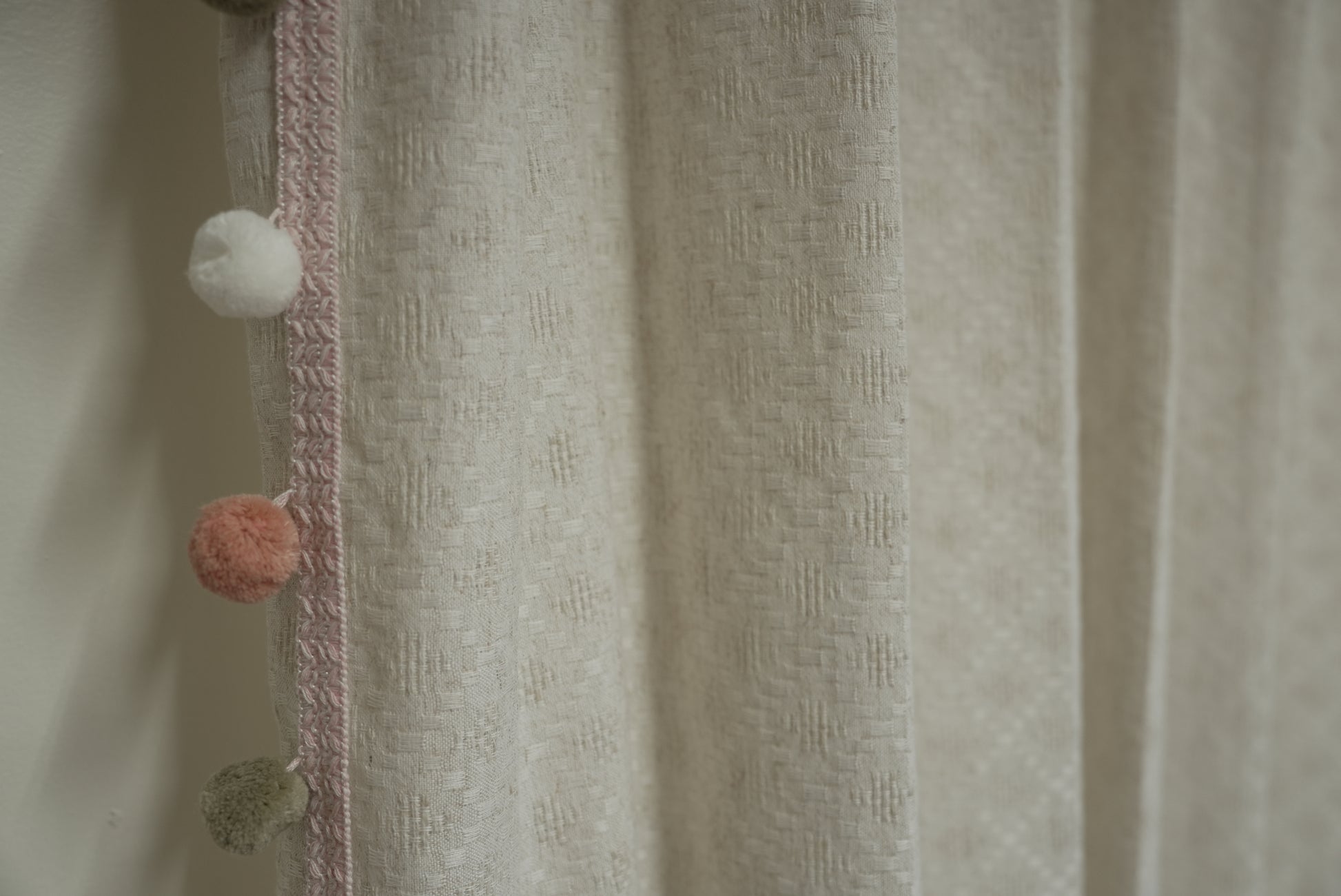 Beige Linen Sheer Curtains with Morandi Pom Poms - Organic Texture Meets Artful Whimsy
