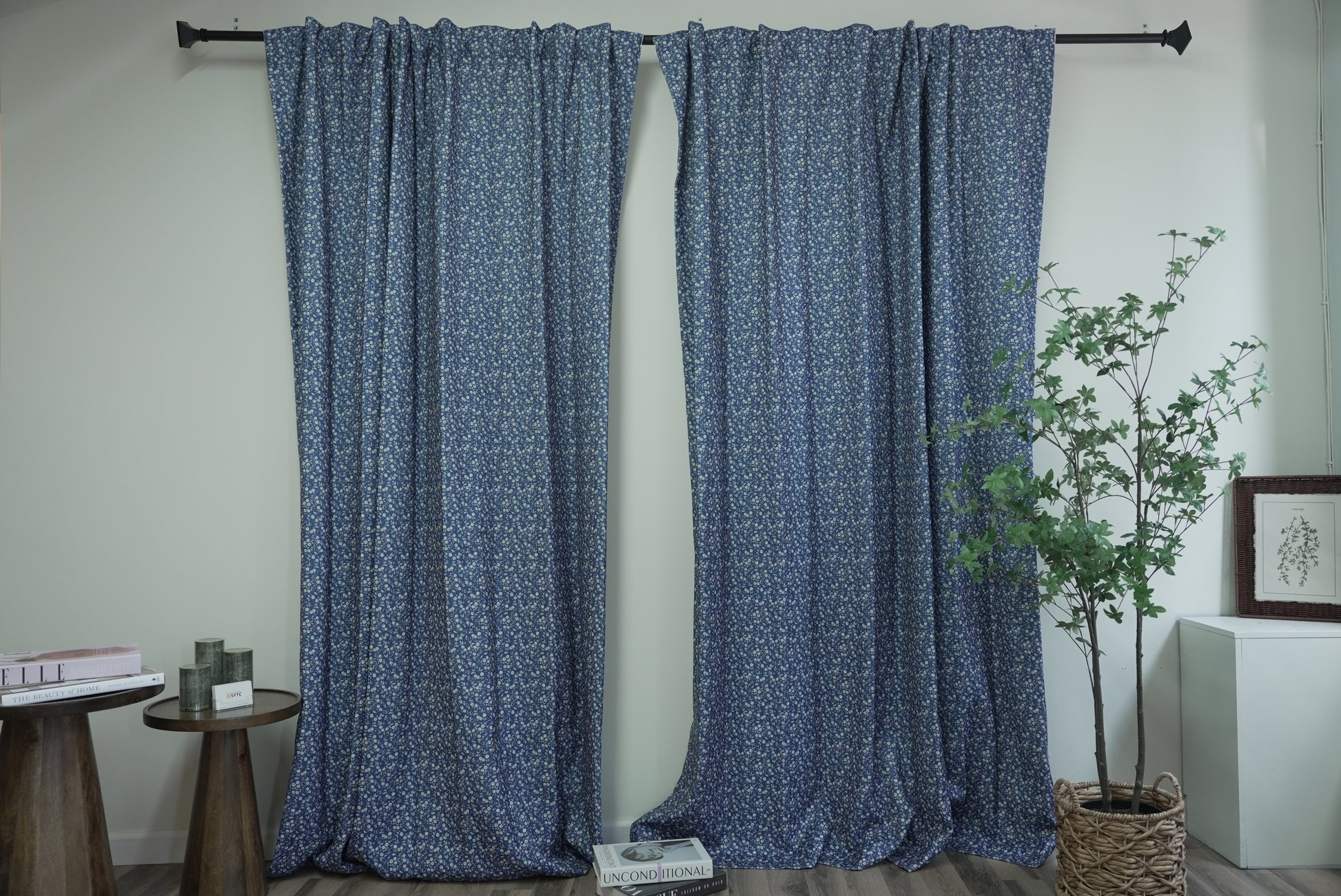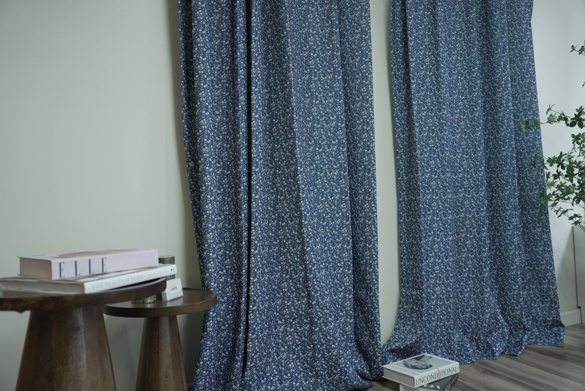 Navy Blue Floral Curtains - Moody Blooms for Dramatic Elegance