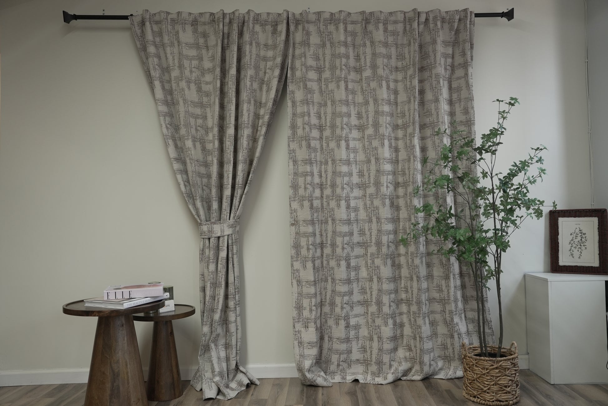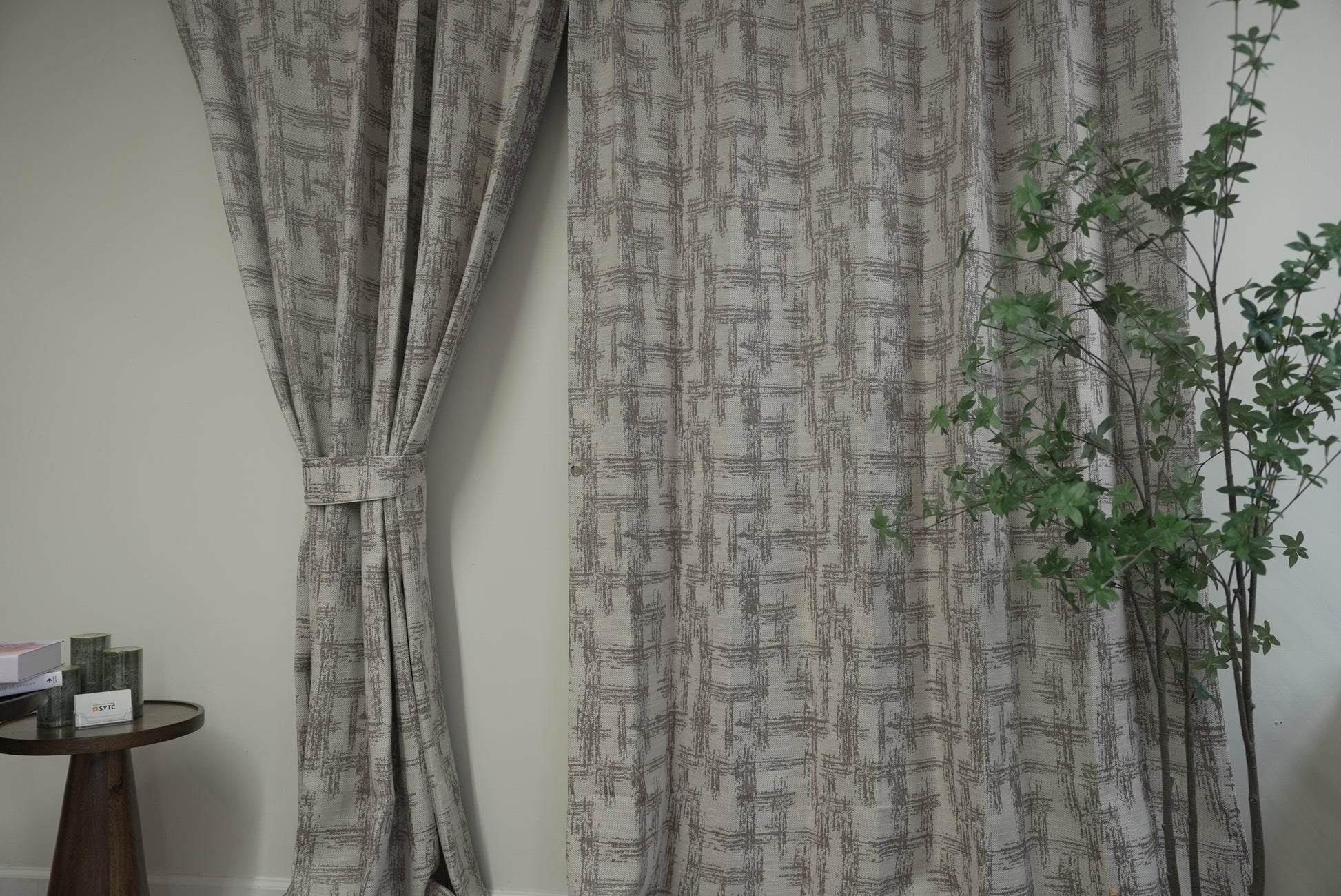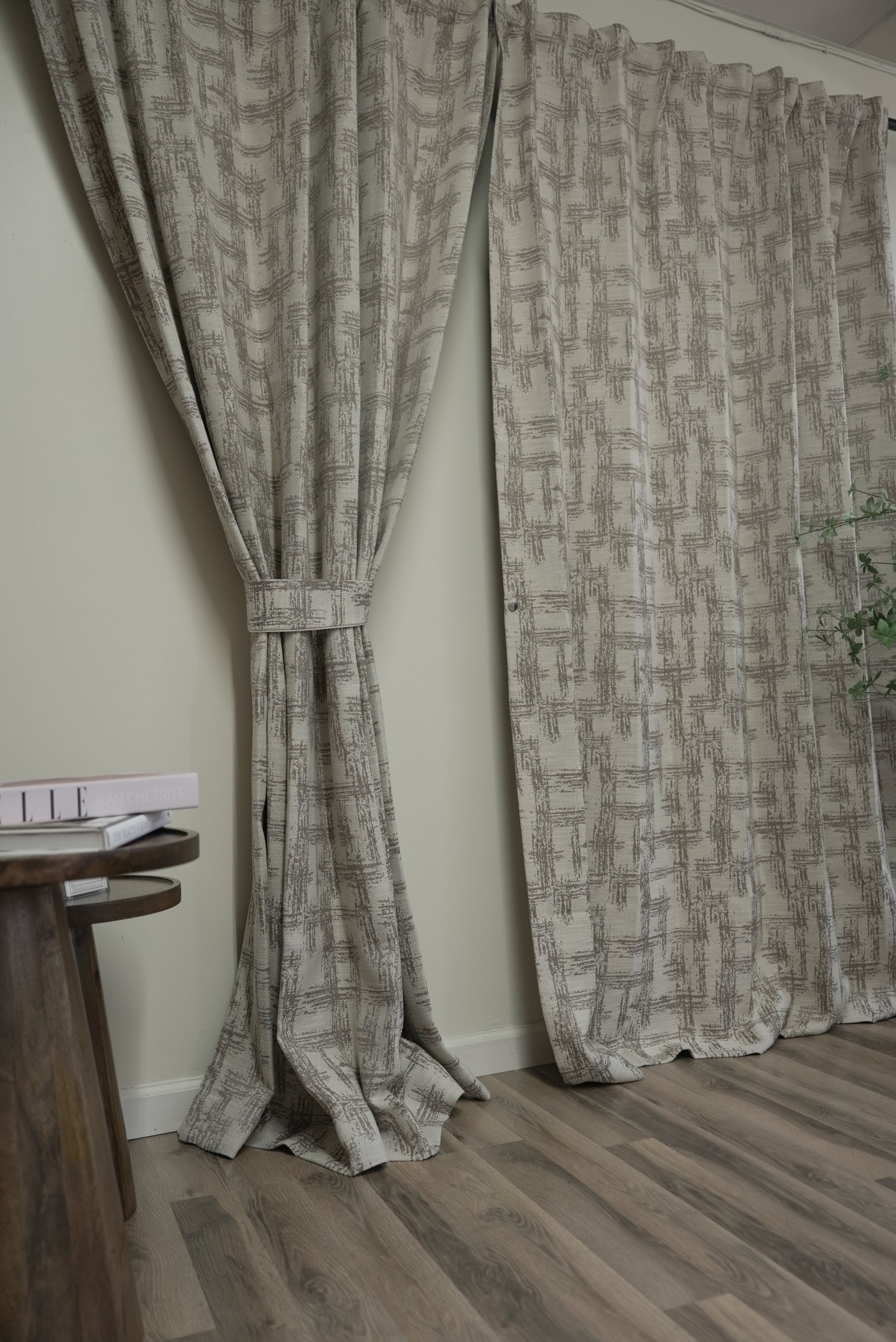 Taupe Cross Texture Curtains - Woven Linen Blend for Organic Modern Interiors