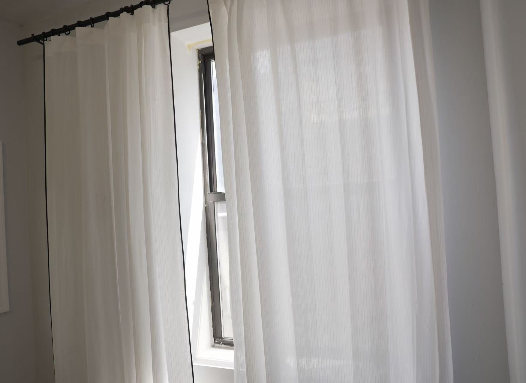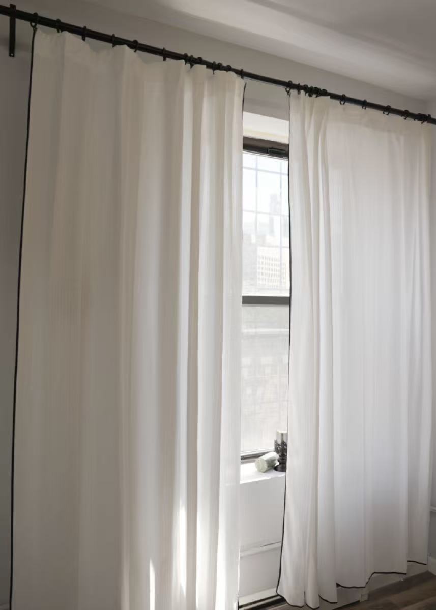 White Linen Curtains with Black Trim – Modern, Natural & Light-Diffusing